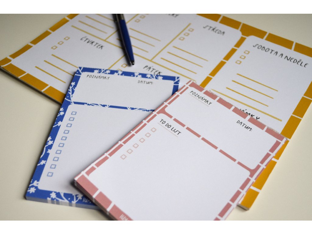 Plánování nebylo nikdy přehlednější. Illustera to do listy jsou stvořené pro ty, kteří milují ten vítězný pocit z každého odškrtnutého úkolu. Skvěle padnou do tvého diáře, ale parádu udělají i jen tak položené na stole jako stylový pomocník nebo nákupní seznam.